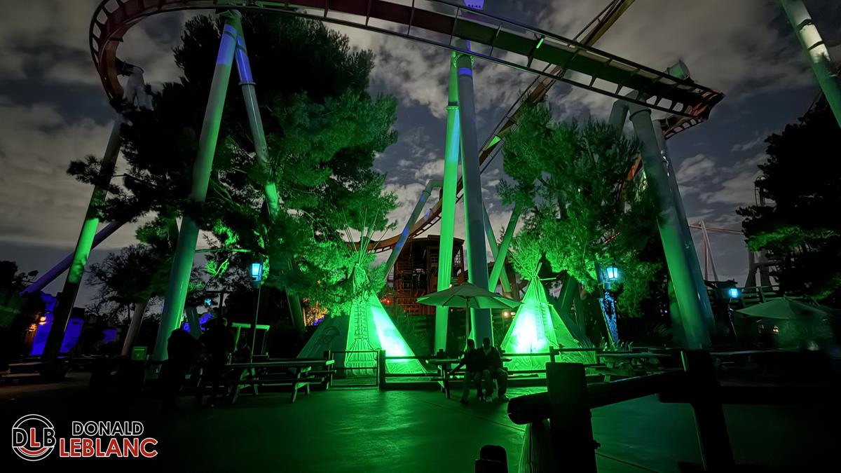 Last night was the opening for Knott’s Scary Farm. The line to get in was all the way back past Ghosrider but moved quickly. It started a little rough as they would not let me in the turnstile with my Scary Farm Season Pass. I had to follow a worker back to the ticket kiosk and we figured out that my Scary Farm Season Pass had linked to my son’s regular season pass instead of mine. They got it swapped over and I got into the park about 15 minutes later than I should have. I missed the opening witch show but that is always hard to see on the first night.